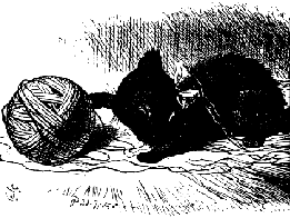 Pero el gatito negro ya lo había despachado Dina antes aquella tarde y así fue como ocurrió que, mientras Alicia estaba acurrucada en el rincón de una gran butacona, hablando consigo misma entre dormida y despierta, aquel minino se había estado desquitando de los sinsabores sufridos, con las delicias de una gran partida de pelota a costa del ovillo de lana que Alicia había estado intentando devanar y que ahora había rodado tanto de un lado para otro que se había deshecho todo y corría, revuelto en nudos y marañas, por toda la alfombra de la chimenea, con el gatito en medio dando carreras tras su propio rabo.